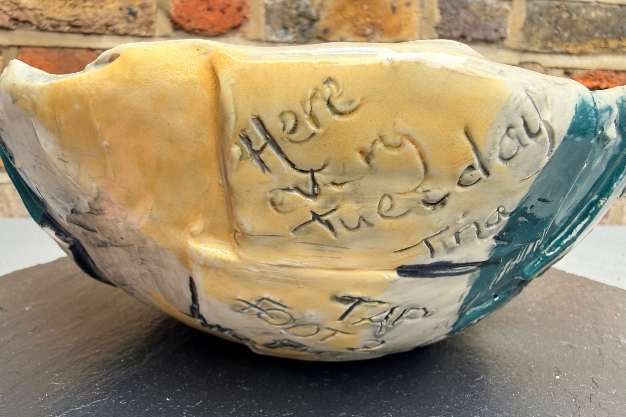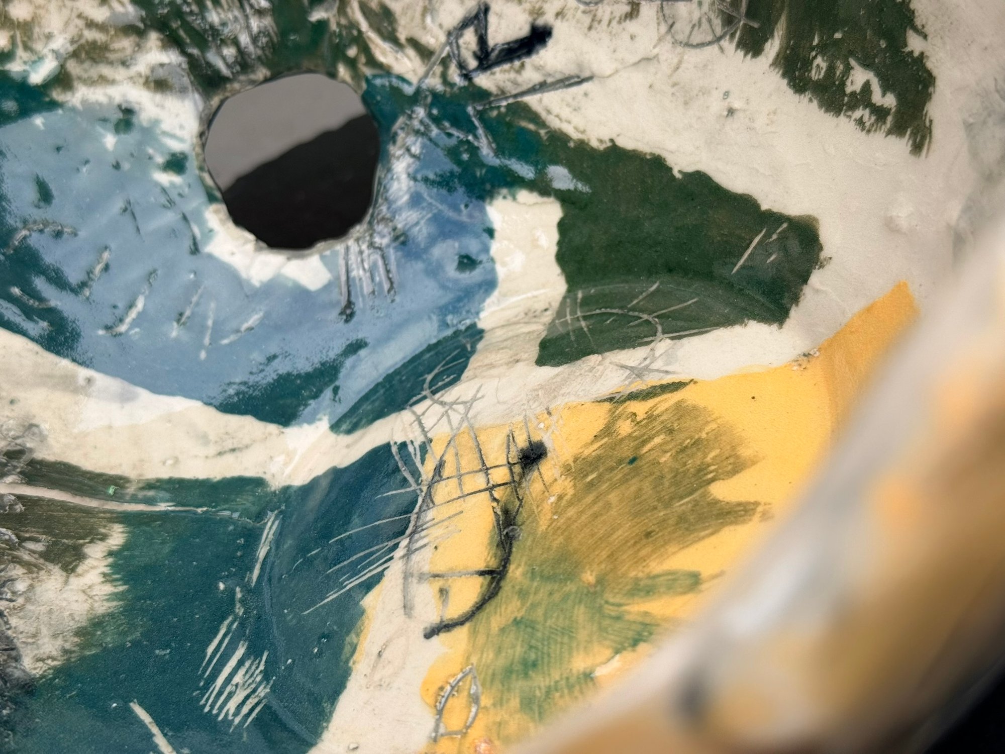 GLRYHoLE is a handbuilt, hand painted and engraved ceramic art piece.
