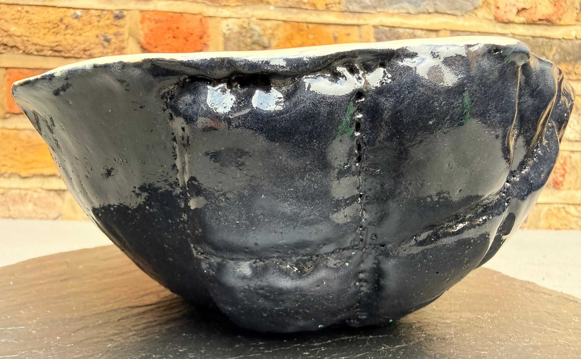 This handcrafted, hand painted and glazed bowl is both an art and practical tableware piece.